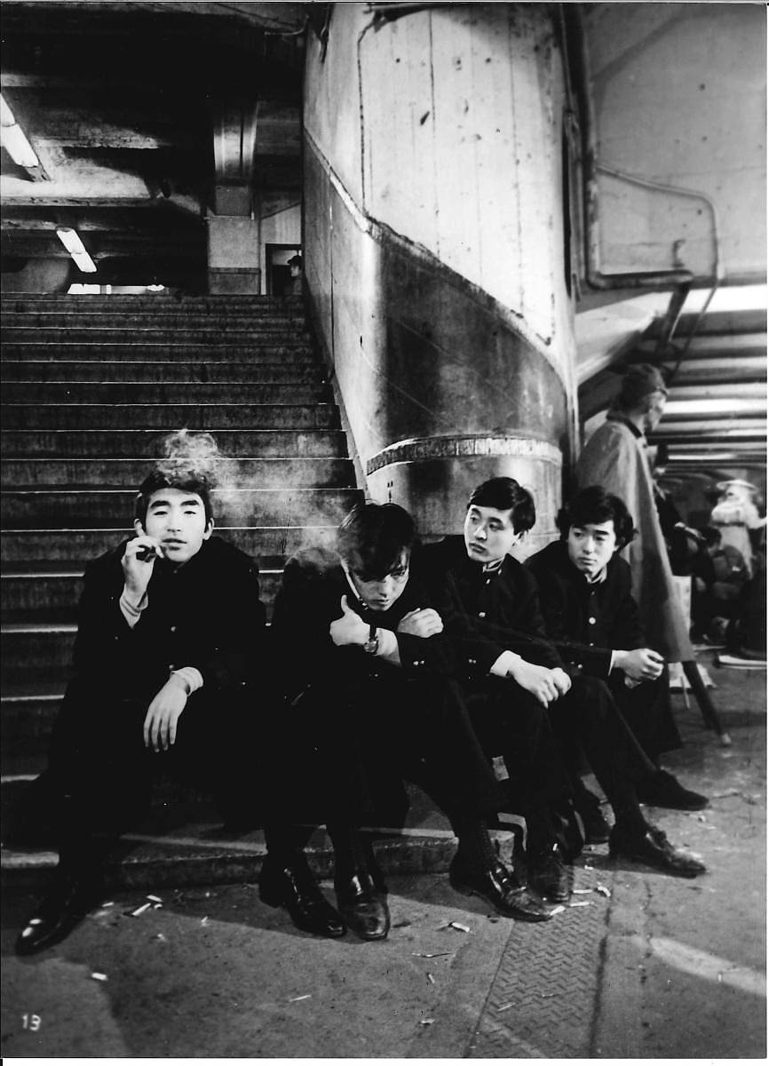 Nagisa Oshima uses pop singer Ichiro Araki to depict the “obscenity” of underclass desire. Four male and three female students from a provincial city accompany their teacher to Tokyo to take university entrance exams. The teacher dies and one of the boys may be the culprit. But the film is less a narrative than a collage of scenes about power imbalance: between city and country, young and old, rich and poor, Japan and Korea. Taking a hint from Twilight Saloon, Oshima uses song to mark out different social positions, from wartime naval trainees and university radicals to ethnic minorities and resentful adolescents. The question is who gets to sing, and what. 1967, 103 min., 35mm, color. In Japanese with English subtitles. Directed by Nagisa Oshima. With Ichiro Araki, Akiko Koyama, Kazuyoshi Kushida, Hiroshi Sato, Kazuko Tajima.
