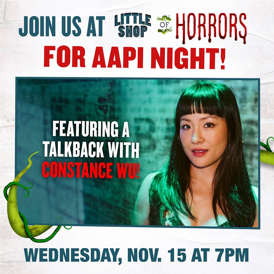 Please join them on November 15th for an unforgettable night of theater at “Little Shop of Horrors,” and stick around for the talkback featuring Constance Wu, who will provide unique insights into the performance.