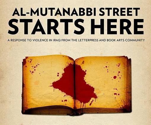 Al-Mutanabbi Street Starts Here assembles artists’ responses to the tragic 2007 bombing that resulted in the destruction of Al-Mutanabbi Street, a cultural and intellectual hub in Baghdad. This important and timely exhibition will be held in five New York City cultural venues from mid-June to late September 2013. The Center for Book Arts is organizing the multi-venue presentation in collaboration with Alwan for the Arts, Columbia University Libraries, International Print Center New York, and Poets House. This major traveling exhibition, which will feature approximately 250 artists’ books and 50 broadsides (prints) by artists from around the world, was co-produced by Beau Beausoleil, Founder of the Al-Mutanabbi Street Coalition, and Sarah Bodman, Senior Research Fellow at the Center for Fine Print Research in Bristol, UK. Each artist was asked to submit three copies of his or her work, to allow for simultaneous tours in Europe and the US. The third set will be donated to the Iraq National Library.