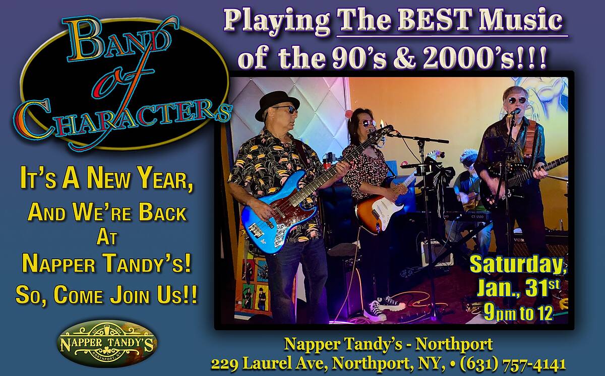 Band of Characters is back at Napper Tandy’s in Northport - Saturday, January 31st from 9pm-12am! Get ready for a high-energy night packed with the BEST hits from the 90’s & 2000’s that’ll have you singing along and dancing all night. Fronted by Hot Donna.