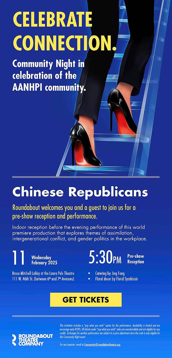 ONE NIGHT ONLY, with pre-performance reception (Catering by Jing Fong, Floral decor by Flora Symbiosis) starting at 5:30 p.m.