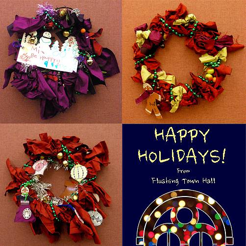 Create beautiful Christmas wreaths with up-cycled fabrics, beads and ribbons which will be donated to local senior centers in Queens.