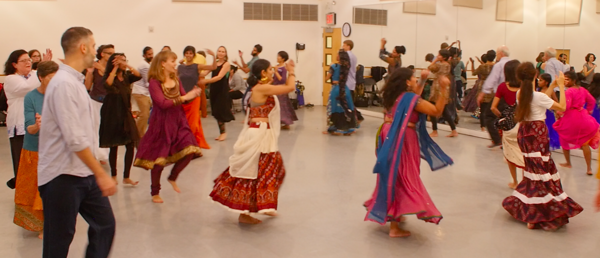Dance In The Round will be held at Gibney Dance Center, 890 Broadway, 5th Floor, Studio 1. Gibney is located between 19th and 20th Streets. *KID POLICY: This workshop is oriented to adults, but children are welcome. As we cannot offer special instruction for kids this time, please note: Kids 10 and under must be accompanied by an adult. For kids under 10, you must have one adult per child. We love them, but please keep track of your children! NOTES FOR ALL: Comfortable, ideally loose, bottoms suggested. Long skirts and/or kurtas welcome, but not required. No shoes on dance floor. If your feet need support, please bring a pair of indoor shoes to wear in studio. Bring water. *We’ll provide basic sticks, but if you have decorated dandiya, bring them!