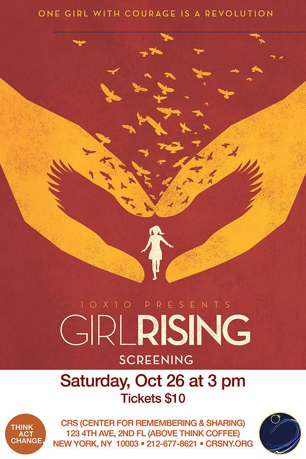 CRS Community Films and Think Act Change NYC invite you to screen GIRL RISING, a new feature film about the strength of the human spirit and the power of education to change the world. Afterwards, we’ll discuss some ways you can get involved with the partner NGOs (see below) to improve educational opportunities for girls around the world. Guest speaker TBA. Tickets are $10 and only purchasing online here guarantees you a seat.