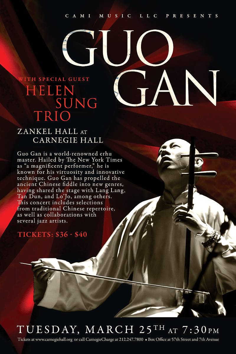 GUO GAN Erhu Concert at Carnegie Hall on March 25th, 7:30pm