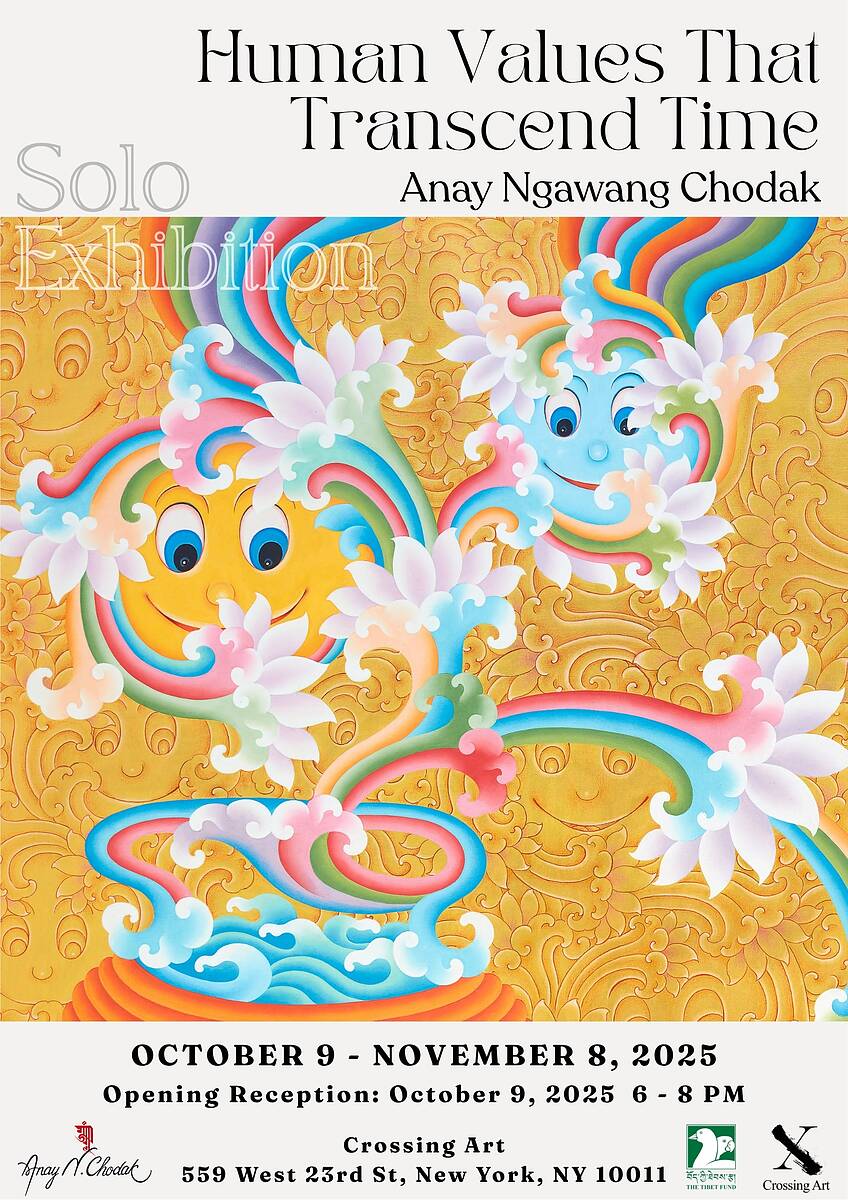 Human Values That Transcend Time, the first major solo exhibition of Tibetan contemporary artist Anay Ngawang Chodak (b. 1980), opens this October at Crossing Art Gallery in Chelsea. This milestone in Anay’s career showcases a body of work that reimagines Tibet and the Himalayas’ rich Buddhist heritage through contemporary abstraction and a global visual language.