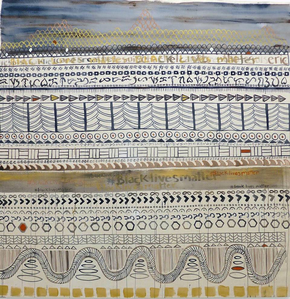 Manalo’s recent projects include a suite of paintings inspired by traditional Filipino tattoos. Relating to her Filipino heritage as well as her global perspective, these works incorporate imagery of pre-colonial Filipino script and indigenous tattooing, along with her own symbols and icons from contemporary culture.