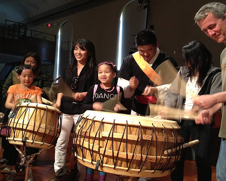 Professional musicians and their student performers from the Korean Traditional Marching Band come together to present their Korean folk drumming repertoire followed by an interactive workshop that helps participants understand Korean rhythms and instruments, and explore traditional movements.