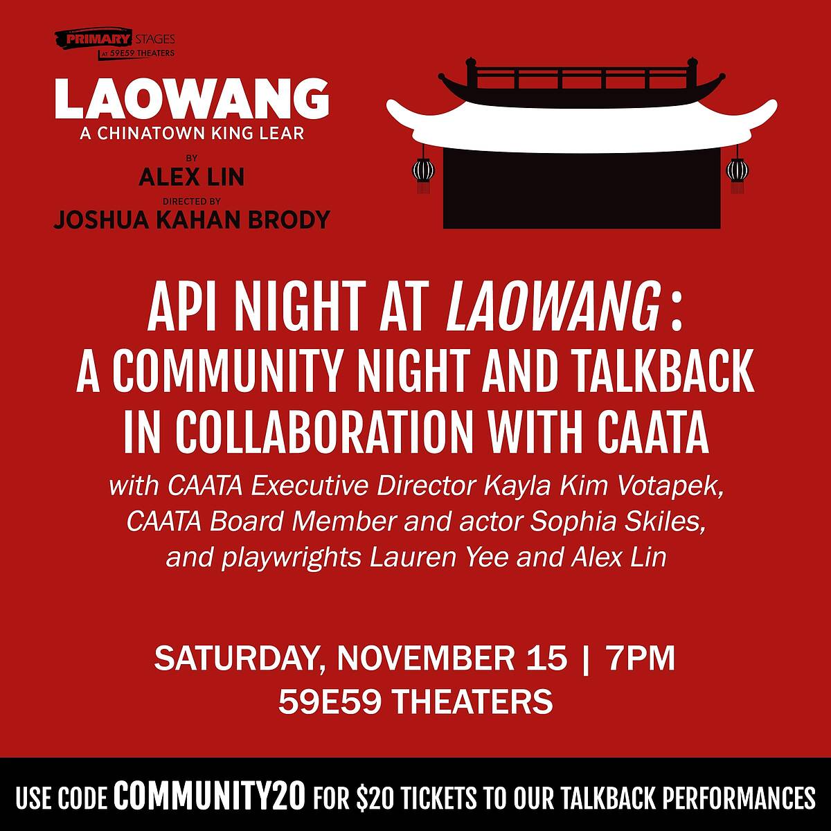 CAATA joins forces with Primary Stages for a post-show dialogue on Laowang, emergent themes in the play, and the industry for API artists across disciplines and generations.
