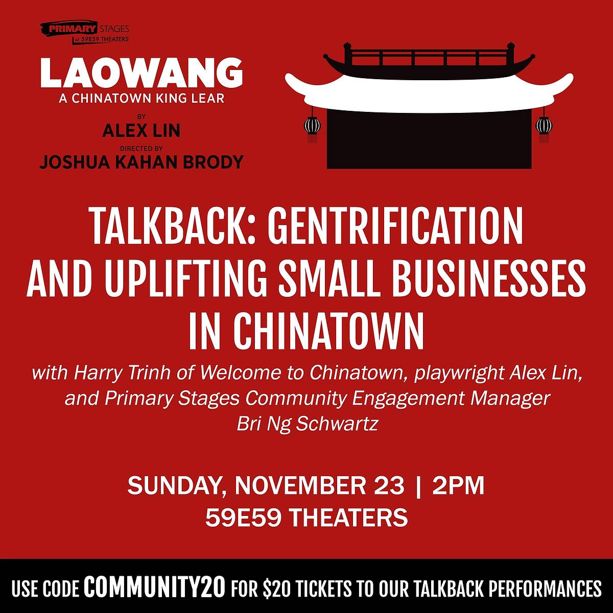Use code COMMUNITY20 for $20 tickets to talkback performances