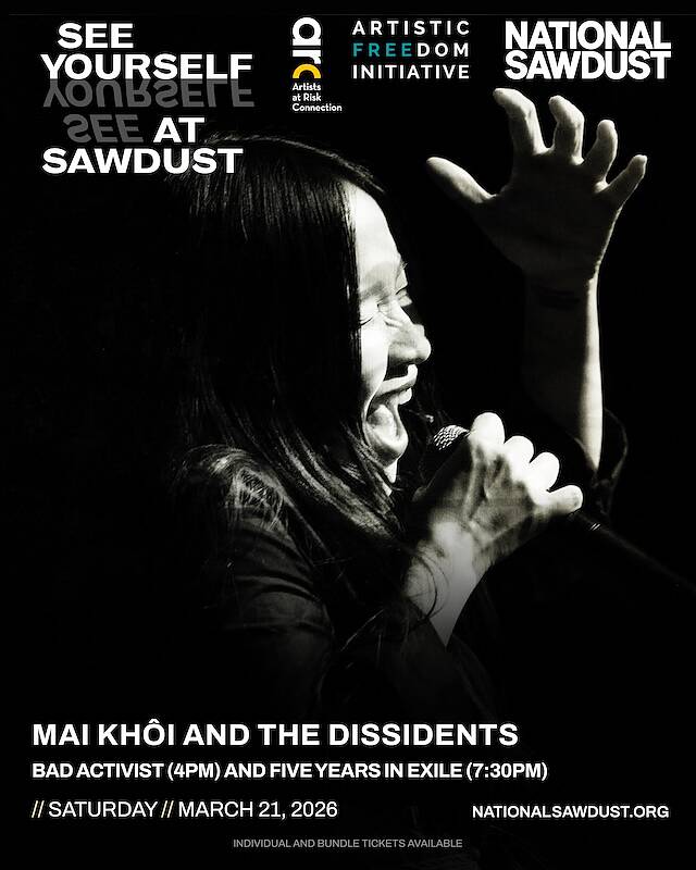 Mai Khôi & the Dissidents present a 2-in-1 concert performance: first, they will present “Bad Activist,” where Mai Khôi recounts her journey from pop stardom to activism through a spellbinding mixture of original music, projections, archival footage, and theatrical performance. Throughout the narrative, “Bad Activist” confronts urgent political issues including the legacy of imperialism, the deleterious effects of censorship on arts and speech, and the worsening human rights situation in Vietnam. The story ends with Khôi’s exile in the United States, where she is once again confronted with the same rising authoritarianism she fled six years ago. After a dinner break, the band will perform music from their upcoming album “Five Years in Exile,” which will be available for the first time following the show. Their new songs address issues of climate change, political incarceration, and corporate oligarchy, as well as personal stories of love, loss, and life away from home.