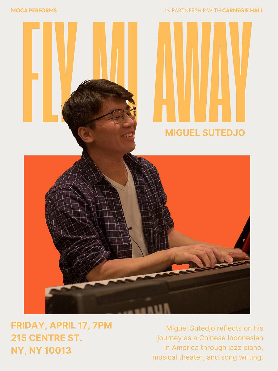 In this performance, composer and performer Miguel Sutedjo reflects on his journey as a Chinese Indonesian in America through jazz piano, musical theater, and song writing. He shares selections from his original musical Fly Me Away—which follows Frank, a teenage pianist chasing his jazz dreams in conflict with his immigrant father’s traditional expectations—alongside other original compositions. The program—arranged for piano, bass, drums, and three vocalists—offers a vibrant blend of personal storytelling and musical exploration.