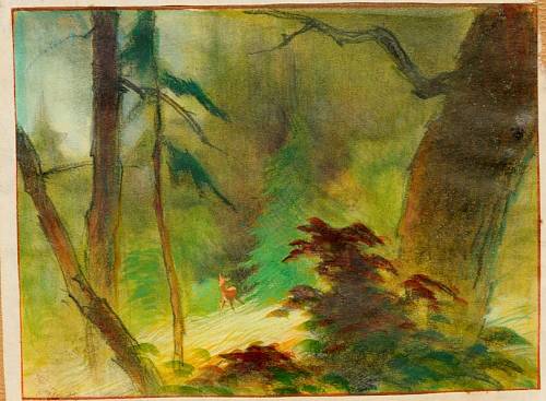 Image credit: Tyrus Wong, Bambi (visual development), 1942; watercolor on paper; 4.75 x 6 in.; Courtesy of Mike Glad, ©Disney.