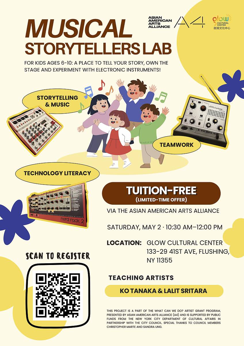 Ignite your child’s imagination at the Musical Storytellers Lab, a tuition-free workshop where children ages 6-10 transform original stories into immersive sonic worlds. Led by award-winning teaching artists Ko Tanaka and Lalit Sritara, this hands-on experience at the Glow Cultural Center invites kids to step away from screens and dive into the tactile world of analog synthesizers. Through a unique blend of character-building and technology literacy, students will collaborate to compose a shared musical performance, learning how to sculpt sound and express complex emotions. Your child will receive personalized guidance as they plant the seeds of a story and watch them grow through melody and machine.