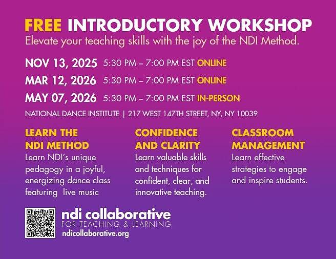 Elevate your teaching skills - join National Dance Institute for a FREE introduction to the NDI Method!