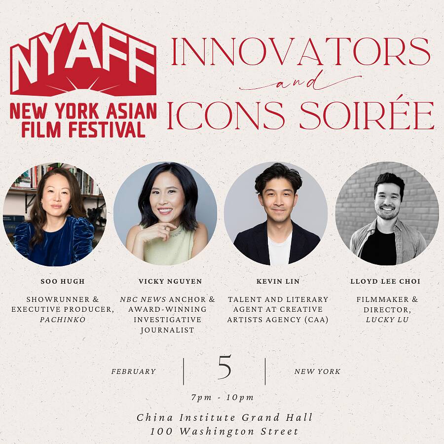 NYAFF Icons & Innovators Soirée is an intimate evening honoring Asian and Asian American leadership in film and culture. Taking place February 5, 2026 at China Institute of America, NYC, the cocktail-style gathering brings together filmmakers, creatives, industry leaders, tastemakers, press, cultural creators, and members of the NYAFF community for conversation, connection, and the launch of the festival’s 25th edition year.