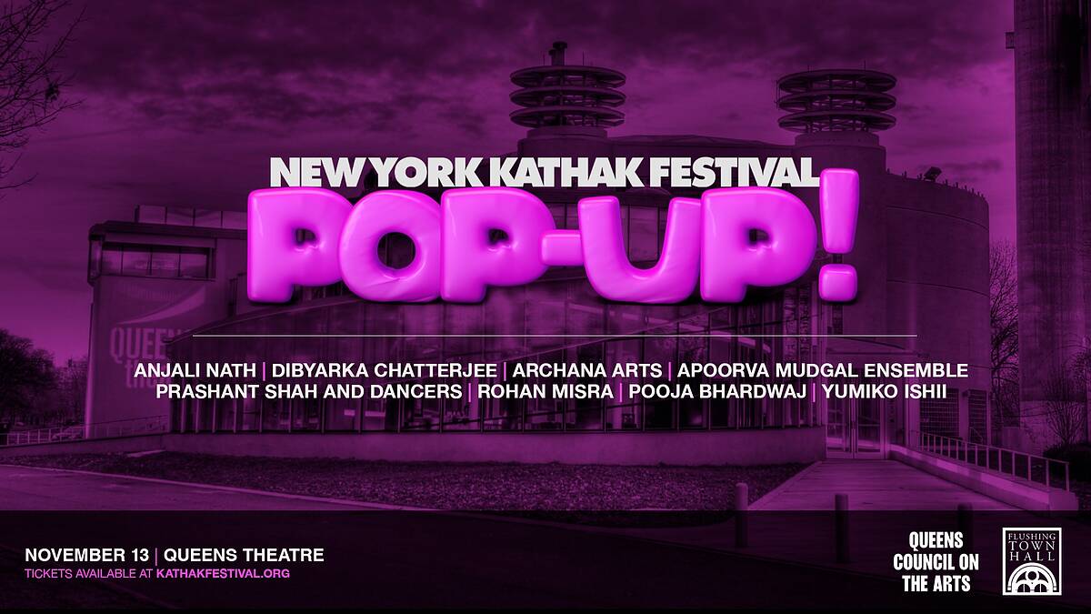Come witness the beauty, finesse and diversity within Kathak, a dance that is derived from storytelling, and dates back 5000 years. Celebrate the Indian classical arts through an evening of dance & live music on November 13 at New York Kathak Festival’s second Pop-Up concert of the year! Artists include Archana Arts, Prashant Shah & Dancers, Anjali Nath, Yumiko Ishii, Pooja Bhardwaj, Apoorva Mudgal Ensemble, Dibyarka Chatterjee, and Rohan Misra.