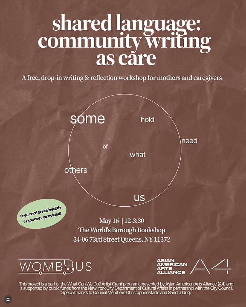 This project is a part of the What Can We Do? Artist Grant program, presented by Asian American Arts Alliance (A4) and is supported by public funds from the New York City Department of Cultural Affairs in partnership with the City Council. Special thanks to Council Members Christopher Marte and Sandra Ung.