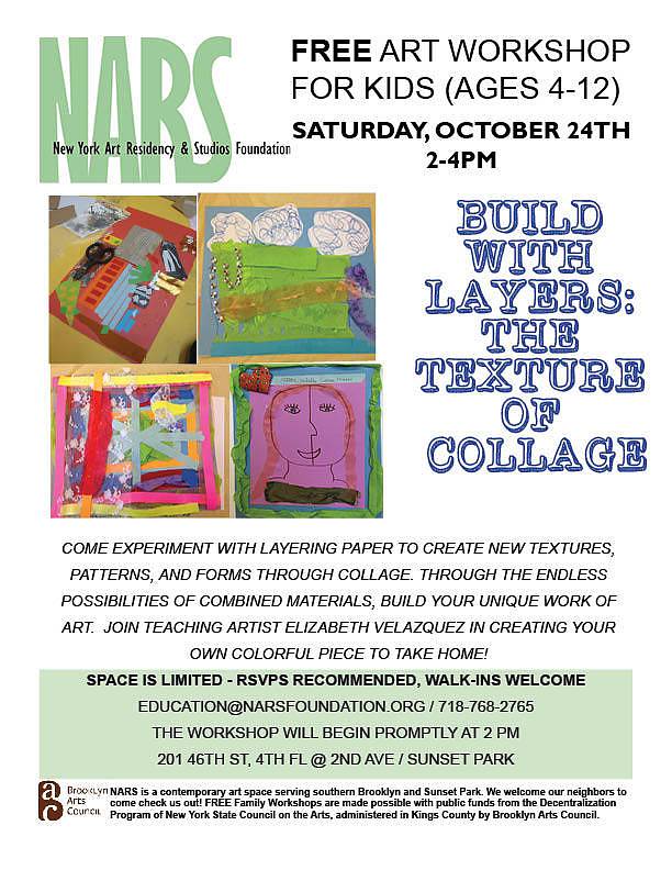 Come experiment with layering paper to create new textures, patterns, and forms through collage. Through the endless possibilities of combined materials, build your unique work of art. Join Teaching Artist Elizabeth Velazquez in creating your own colorful piece to take home!