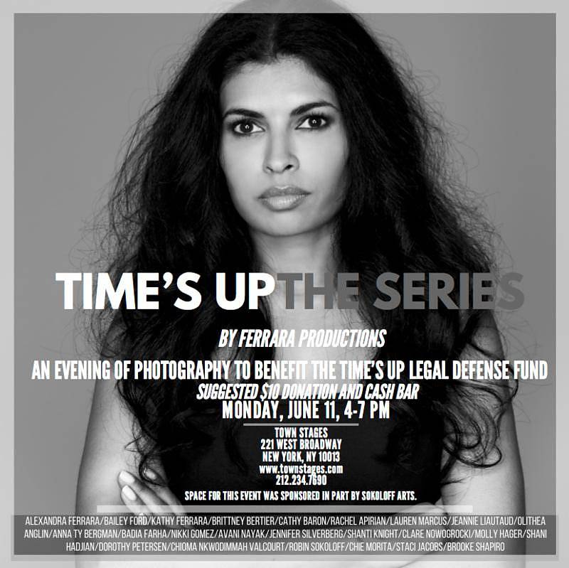 Ferrara Productions will premiere Time’s Up: The Series, an evening of photography to benefit the Time’s Up Legal Defense Fund, on Monday, June 11, 2018 from 4-7pm at Town Stages, 221 West Broadway (between White and Franklin), NYC. $10 suggested donation, with a cash bar.