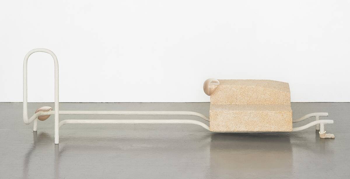 Yixuan Wu approaches the same threshold through domestic care infrastructures. She reconstructs “questioned comforts” with deformed support structures functional in appearance, destabilized in effect. Working from sensory-derived material vocabularies, Yixuan embeds assistive gestures into everyday, domestic objects, where soft resistance and bodily negotiation reiterate acts of care. What holds also withholds. In these familiar domestic structures, she introduces irregular glass orbs that lock onto the sculptures’ joints. Soothing yet disquieting, they carry the sensual charge of bodily gestures: the in-between gestures of care and dependency.