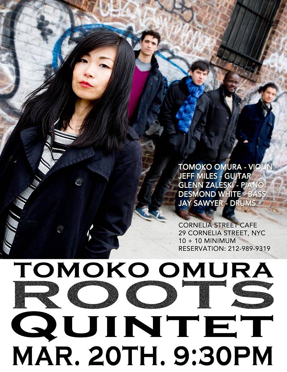 Tomoko Omura Roots Quintet is a modern jazz quintet that plays Tomoko’s compositions, inspired by Japanese culture, person, folk tales and melodies.