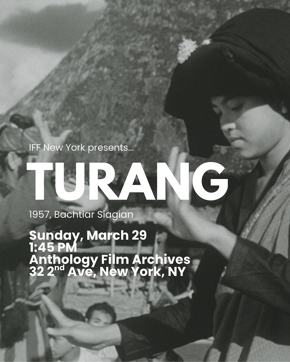 Indonesian Film Forum is proud to present the US East Coast premiere of Bachtiar Siagian’s Turang (1957) - a seminal piece of Indonesian film history, rediscovered in 2023 after having declared lost for many years.