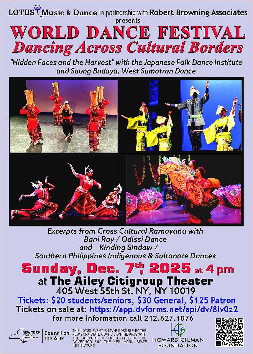 Featuring “Hidden Faces of the Harvest” with @@japanesefolkdanceny, and @saungbudaya, West Sumatran Dance, and excerpts from the Cross Cultural Ramayana with the Trinayan Odissi Collective East Indian Dance