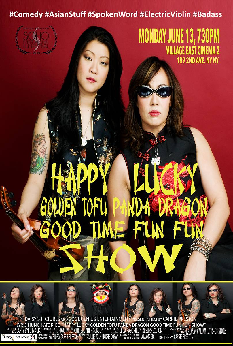 The Soho International Film Festival is presenting the world premiere of HAPPY LUCKY GOLDEN TOFU PANDA DRAGON GOOD TIME FUN FUN SHOW! So all that diversity discourse must be working! Please come have a great time while supporting asian American Artists Lyris Hung and Kate Rigg in their awesome movie all about Asians In America, jokes, tropes, stereotypes, questions etc. Told through spoken word, electric violin, stand up comedy and sketch on FILM!http://www.youtube.com/watch?v=get6oa0eUIM&index=15&list=PLBsleLErE_EXB9CdOIXoBitpZV0FZFVwf
