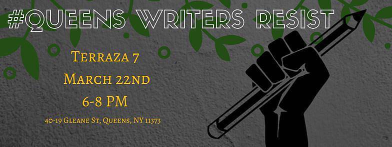 Queens-based writers and artists will invoke language, music and art to re-inaugurate a love of democracy, equality, and compassion. Featured artists will respond to these times through poetry, prose, and image. Please bring pen and paper - there will be a writing session in which participants and featured artists will #WriteOurDemocracy together. Readings by