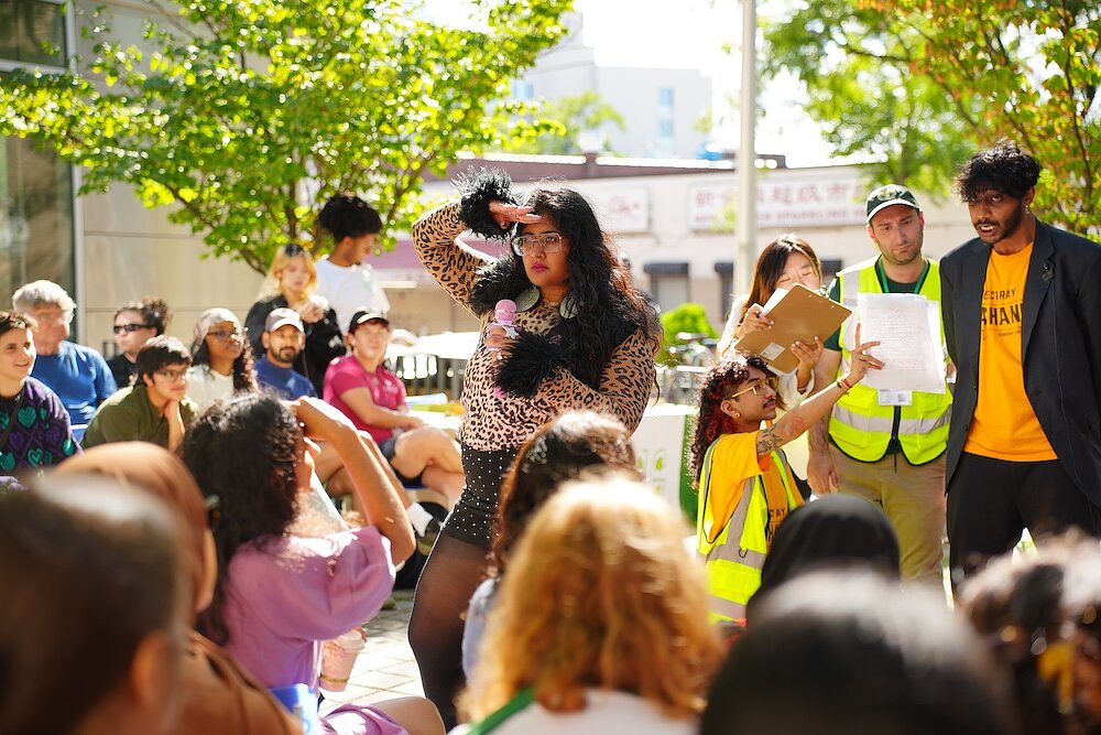 A public theater artist, climate organizer, and urban planner, Sabina Sethi Unni is constantly looking for ways to delight and educate through her art. In her most recent project, “Flood Sensor Aunty,” an anthropomorphized flood sensor at a Queens chai shop dreams of becoming a movie star. Through Chappell Roan song parodies, participation with local climate activists, and dance, Unni informs flood-prone communities throughout the city on disaster preparedness.