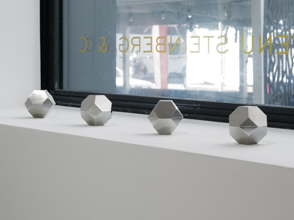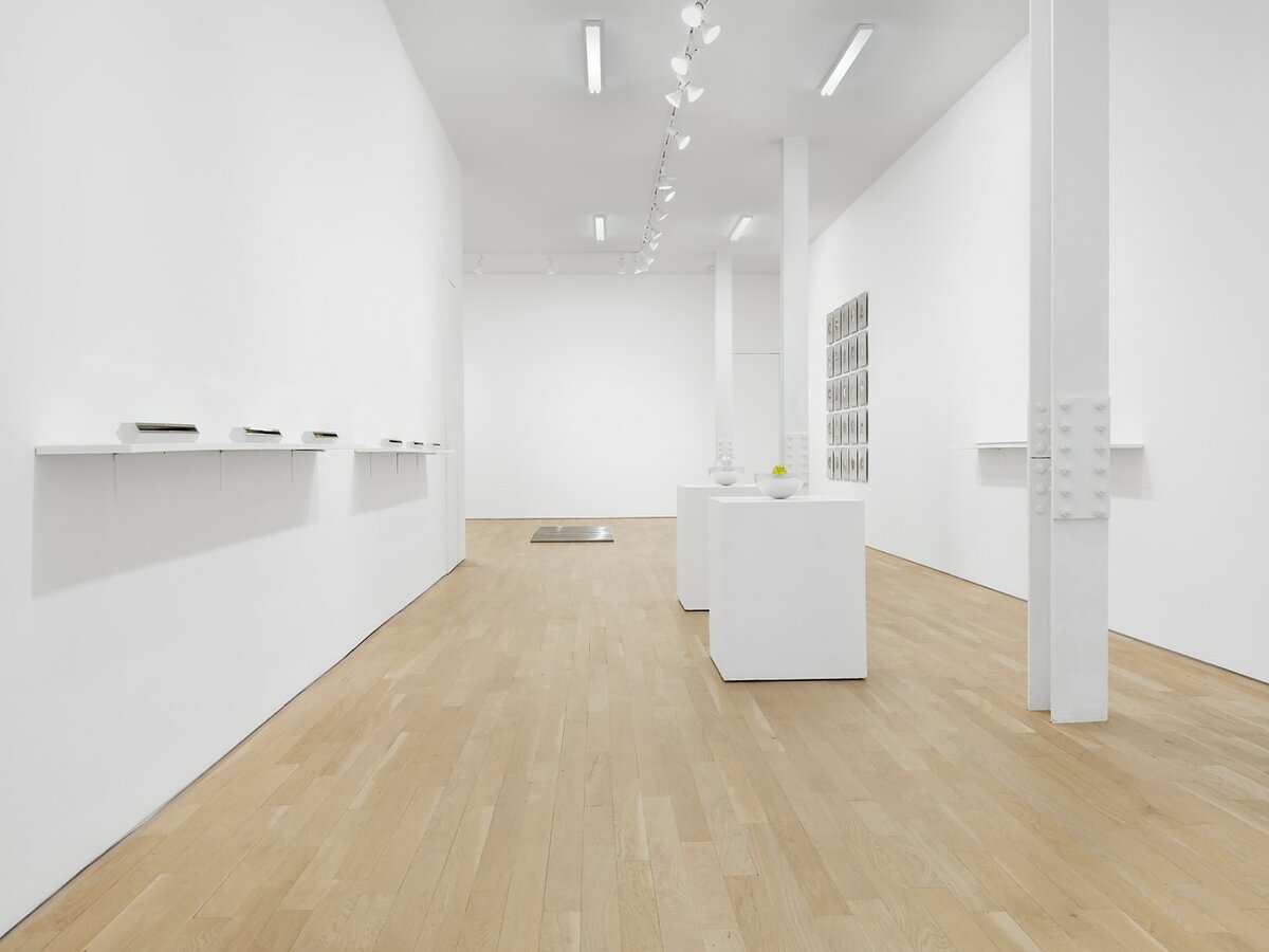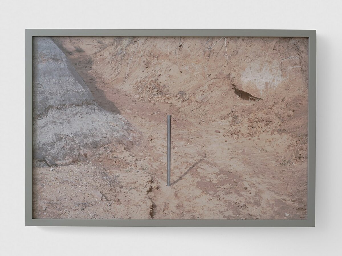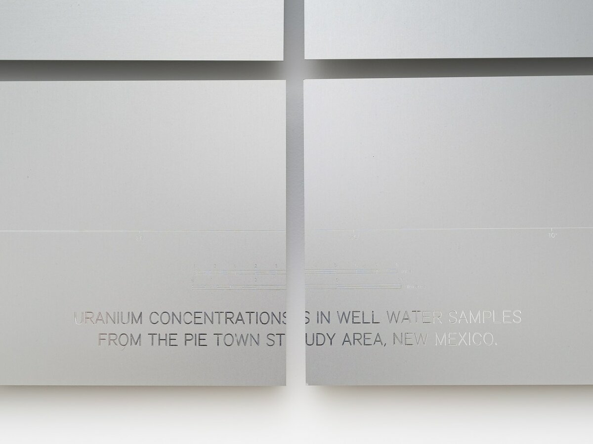 The space was populated with steel “containment structures” that echoed de Maria’s geometric forms. Each of them bore uranium in various states: as mineral fragments, infused into glass, in soil samples. “I’m not trying to make art about these really large scale systems, but art that engages with them, that is a part of them,” said Wang as we walked through the exhibition. For “Yellow Earth,” this meant bringing contamination into the gallery space through these irradiated samples, weaving unexpected threads between the sites of New Mexico and New York. This contamination collapses the distance between what might be considered “there” and “here,” generating a new topology of shared responsibility and history that connects ground zero of atomic experimentation and land art with America’s artistic and financial capital.