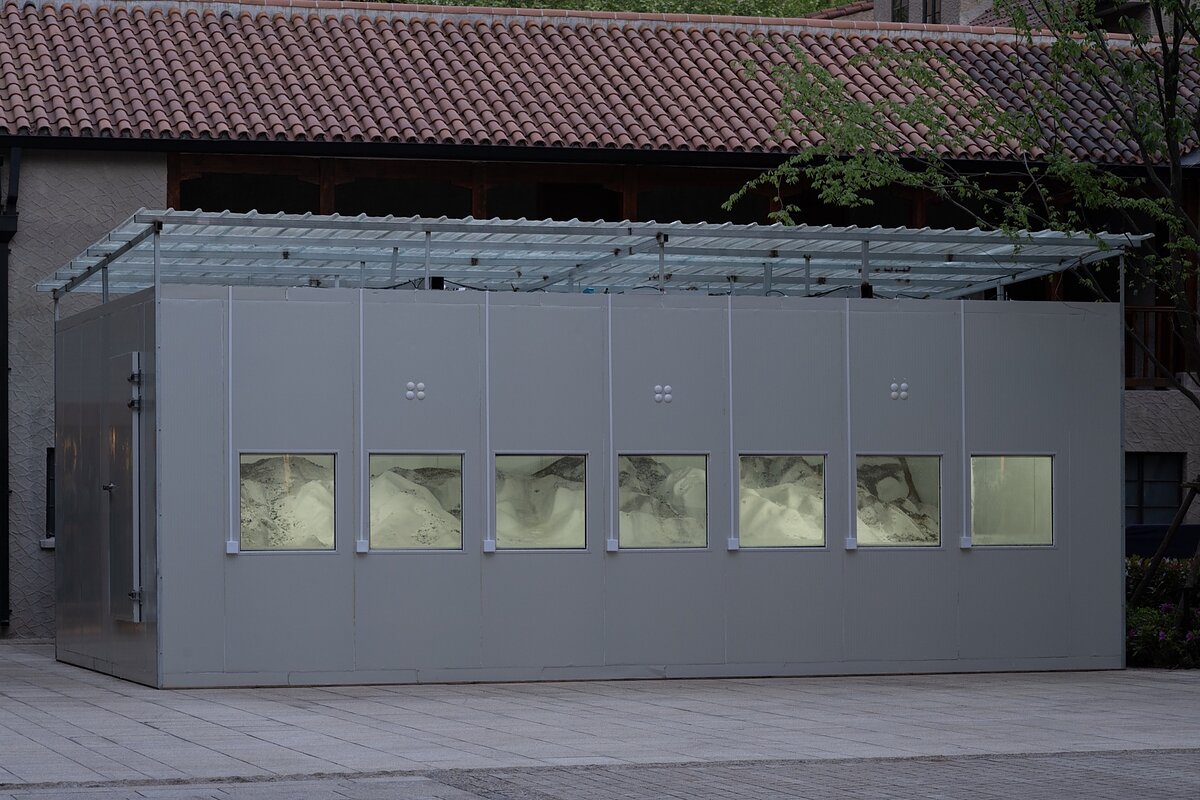 This “something larger,” however, is rarely presented directly, but through absences and deferrals. Wang’s decision to obscure uranium fragments for instance, not only protects viewers from radioactive seepage, but urges us to begin questioning what else remains unseen—all those mutating forces of capital and power out of view. In a 2022 exhibition at La Casa Encendida in Madrid, Wang’s Contagion Garden featured infected tulips with a virus that striated their pedals, using these visible markers to gesture towards the viral cosmos underneath. Similarly, in 10000 li, 100 billion kilowatt-hours (2021), Wang produced a snowy landscape using dam energy powered by glacial melt, transforming the snow into an inverse signature of the glacier’s disappearance.