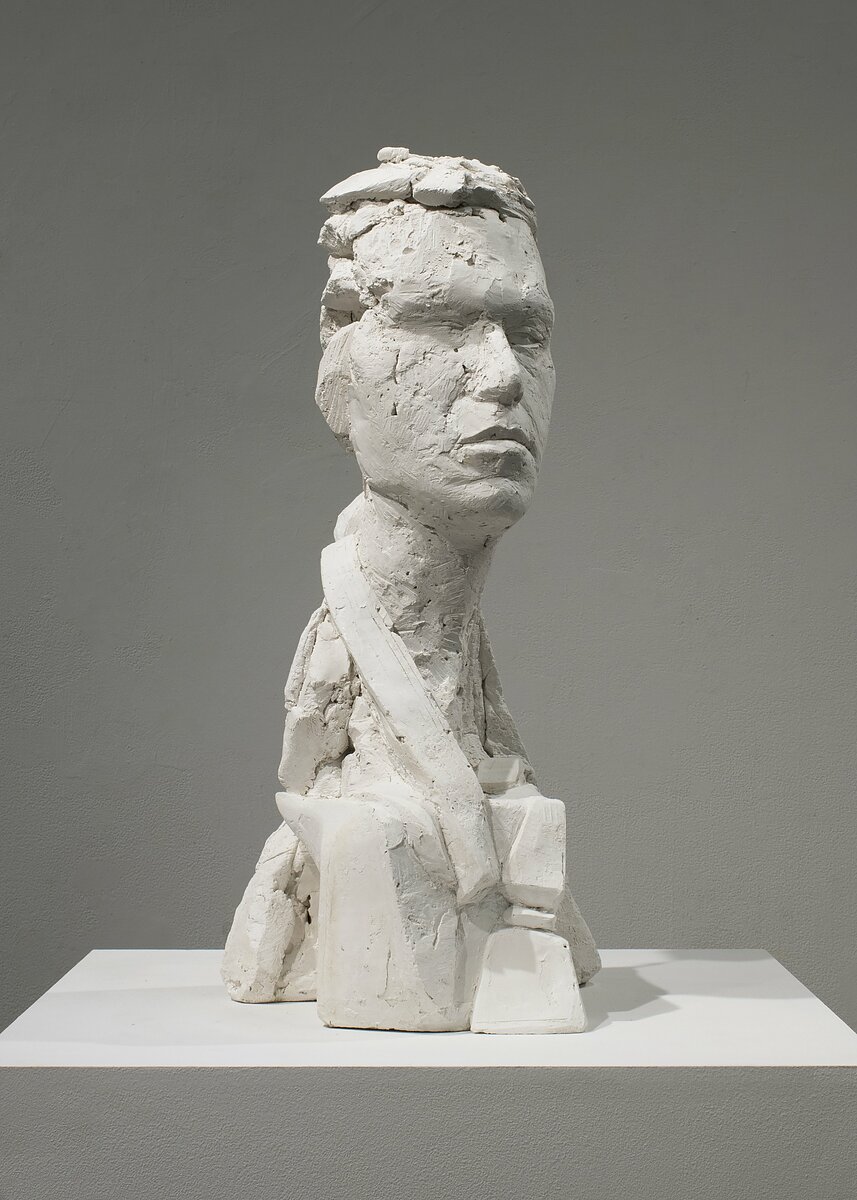 While Hong’s previous work with stone showcased meticulous cutting and detailed carving, aiming to realize a specific vision, her approach to plaster is more fluid and experimental, focusing on layering and addition. This method fosters spontaneity in her sculptures, allowing for a richer exploration of identity that moves beyond the binary contrasts of her past work. With plaster, Hong is adopting a more malleable and expansive sculptural language that mirrors the evolving dynamics of her identity and expressions. Her recent figurative plaster pieces are evolving in tandem with her sense of self.