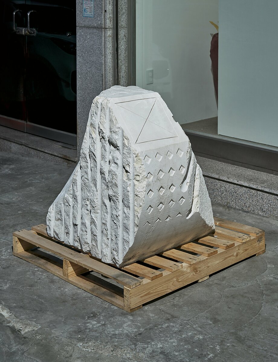 Due to the nature of her work, which involves moving and handling massive, heavy materials, it is deeply influenced by the environment beyond her studio. During her time in Seoul, she was acutely aware of the challenges faced by Korea’s young female sculptors, including difficulties in securing assistant roles in studios due to systemic barriers and finding safe studio spaces. These economic and logistical obstacles are fundamental to Hong’s creative process. Consequently, her works are often named after places in Korea like Chuncheon—a city where she lived for two years because she couldn’t find a suitable studio in Seoul for her large-scale stone and plaster pieces. Hong’s sculptures, thus, are a tangible reflection of her personal experiences and the broader socio-political and cultural context in which she operates.