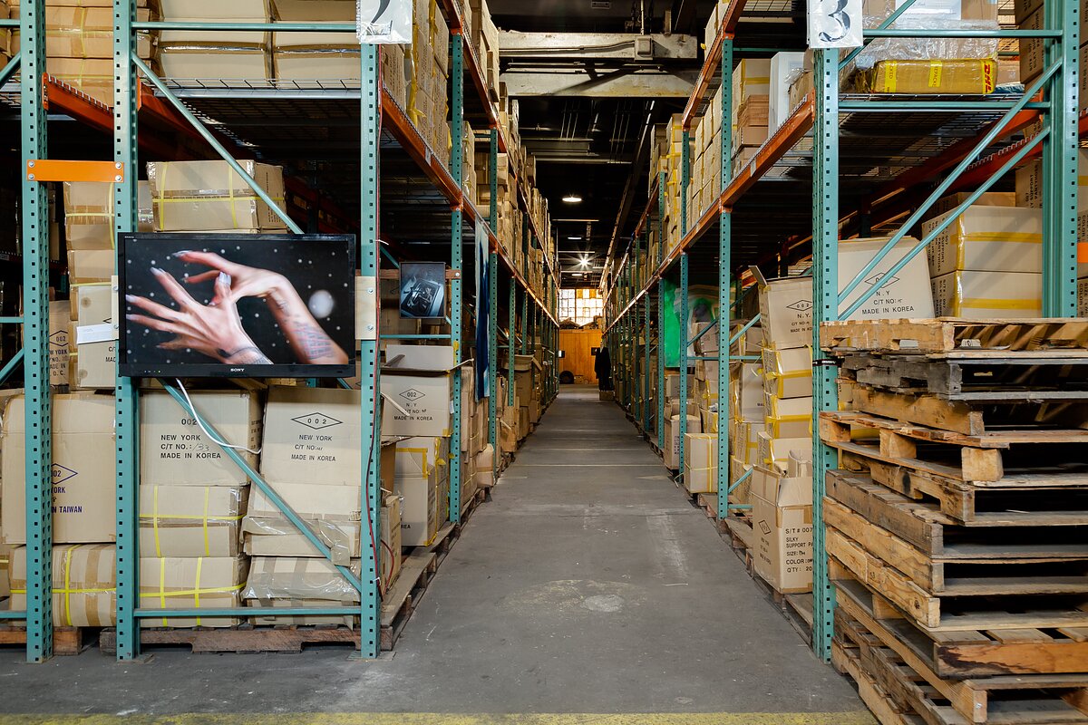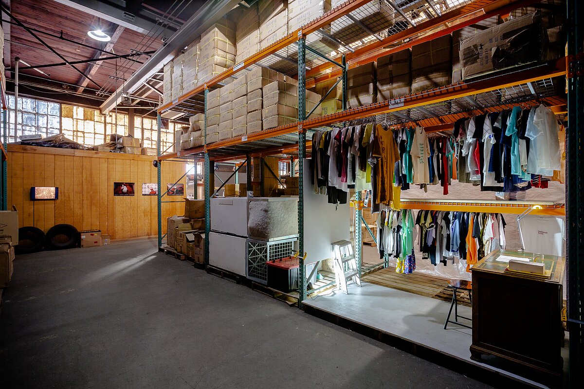 By making space for multiple, even contrasting, readings of a once static symbol like hosiery, “Means of Production” refracts the pertinent issue of labor through the lenses of art, commerce, race, and gender, while muddying the boundaries between each of these categories. Meanwhile, the show attunes its viewers to the artistic and political potential of a seemingly ordinary Queens warehouse, eliciting from the cardboard boxes, cinderblock walls, and dormant inventory subtle proof of its indispensability.