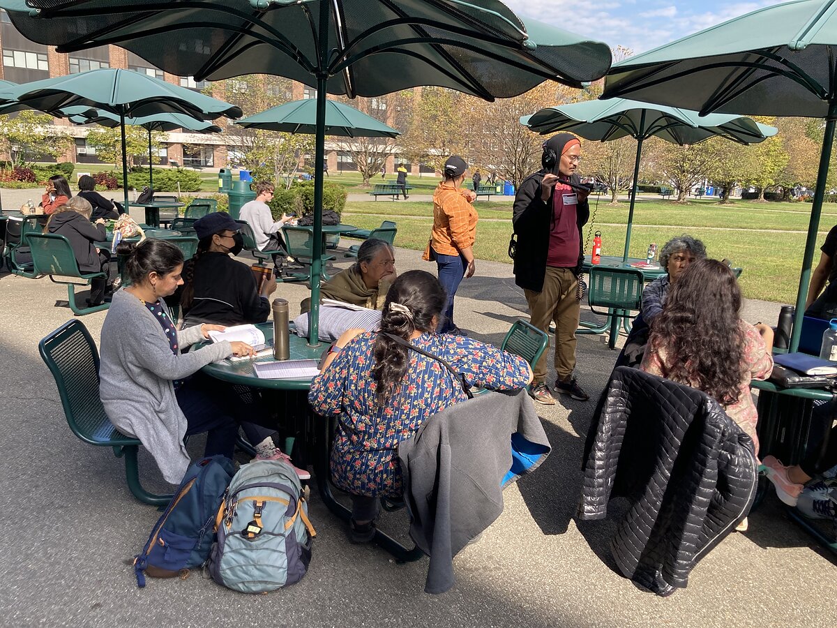 We were finally able to make the exchange happen in fall of 2023. Five members of Janam came to New York and we collaborated on a short theater piece called A People’s CUNY. We also reached out to Remoy who we knew from past projects to collaborate on some sort of documentation of this exchange.