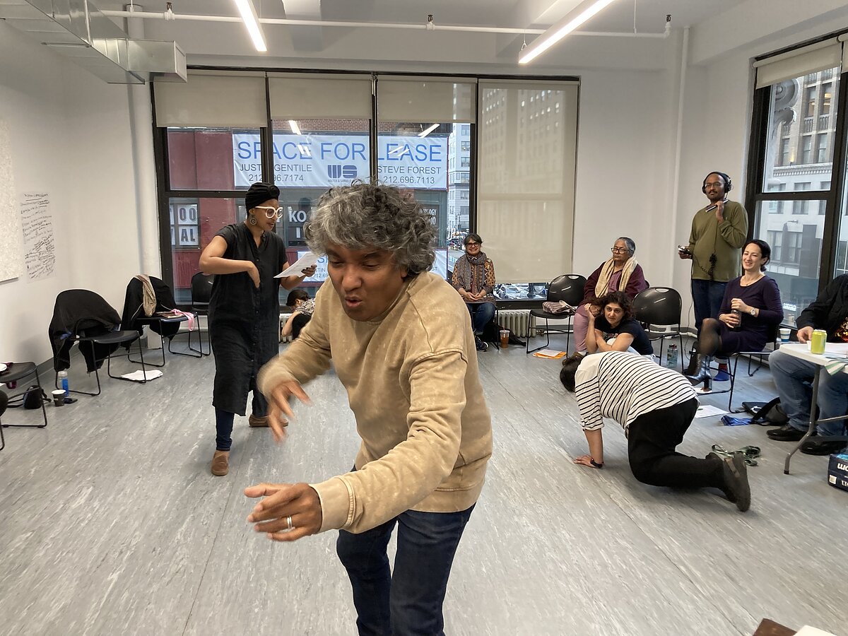 Just to get yourself into the rehearsal room involves some really intense stakes. Getting visas for the Janam collaborators was so tenuous; we had no idea if we were going to get through. Mala almost wasn’t able to make it here due to health concerns. One of Sudhu’s offices was raided by the Delhi police. Similar to what’s ratcheting up in our country right now, Janam’s been living with this kind of authoritarianism for about 10 years now. Just to be able to cross borders to be in collaboration with each other at this moment felt really important to highlight.