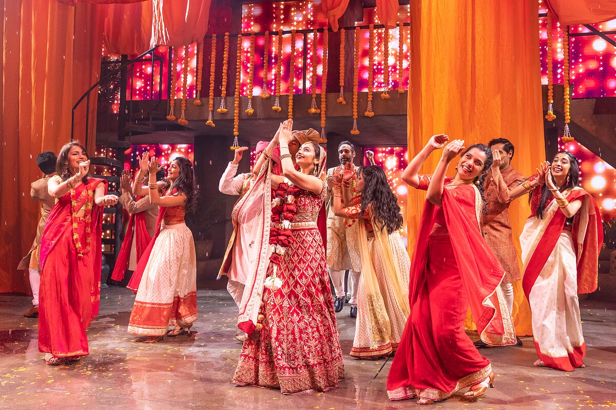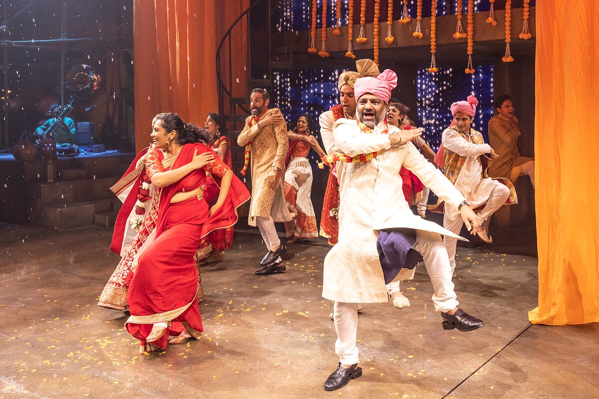 Like the movie, Monsoon Wedding the musical centers on an arranged marriage between Hemant (Deven Kolluri), an American-born finance bro who is ambivalent about transplanting a bride hand-picked by his parents from India to New Jersey, and Aditi (Salena Qureshi), a well-to-do “South Delhi girl” self-aware of her presumed trophy status. While their families meet and clash, a genuine connection grows between them, and another blossoms between their goofball wedding planner (Namit Das) and the bridal family’s servant (Anisha Nagarajan). Aditi’s cousin and confidant Ria (Shavari Deshpande), meanwhile, reckons with the girlhood abuse she suffered at the hands of their uncle and the family patriarch (Alok Tewari).