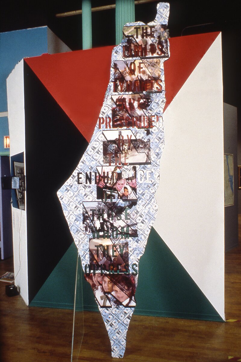 Hamed and Kahng’s revisiting of “Homeland” is not an attempt to overly lionize the 1989 exhibition; it’s worth noting, for instance, that there were no Palestinian artists included in that show. “Moving towards Home” reminds us of the repetition of history, ongoing struggle, and a striving towards inter-communal solidarity. That the 2024 exhibition is titled after poet and activist June Jordan’s Moving towards Home (1982) is telling of the curators’ pursuit of turning the act of remembering into an active act of witnessing.