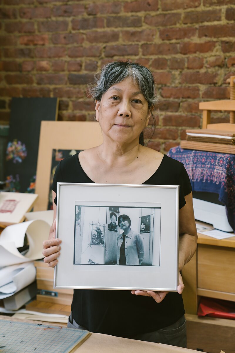 Tomie Arai: The object that I am holding is a portrait of me that was taken by Corky Lee. Corky was asked by the Alliance to photograph a panel discussion that took place at the Bronx Museum of the Arts on May 6, 1998. The discussion, which was titled, “The Community Impact on Asian American Art” was part of A4’s Artist Series, which featured interviews and dialogues between Asian American artists from different disciplines. I was invited to be in conversation with musician Jason Hwang, and Board Member Rober Ku, who was the moderator. The program was held in conjunction with my first solo exhibition at the Bronx Museum. Corky’s photos of the event appeared in the Fall issue of the Alliance newsletter, “Dialogue.” Many years later, at a one person show I organized for MOCA, Corky came to the opening and presented me with this photo. Corky had a remarkable memory but it must have taken him a while to dig this photo up almost three decades later. I was very touched. It was such a thoughtful gesture and a beautiful reminder of our friendship over the years.