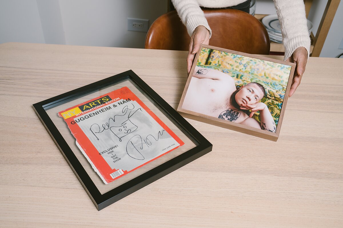 Reena Jana: I had to pick two objects to share, which symbolize what A4 signifies to me. I chose a photograph by Tommy Kha, an artist who has presented at an A4 event, “Take (XIII), Park Slope,” in 2017, along with a magazine cover signed by the late, legendary media artist Nam June Paik. The reason I chose these two, which hang near each other in my city apartment with the faces in the images facing each other, is because together, they symbolize A4’s culture of nurturing others in the AAPI community. I met Nam June Paik a long time ago, although very late in his life, in what must have been his home/studio and early in my career as a tech journalist. At the end of our conversation, he wrote my name on a magazine he had lying around with his face on it and signed it, and wished me well. It was a gesture of supporting the future. I feel the same way about my time with A4 spent supporting artists like Tommy as they embark on growing their careers.