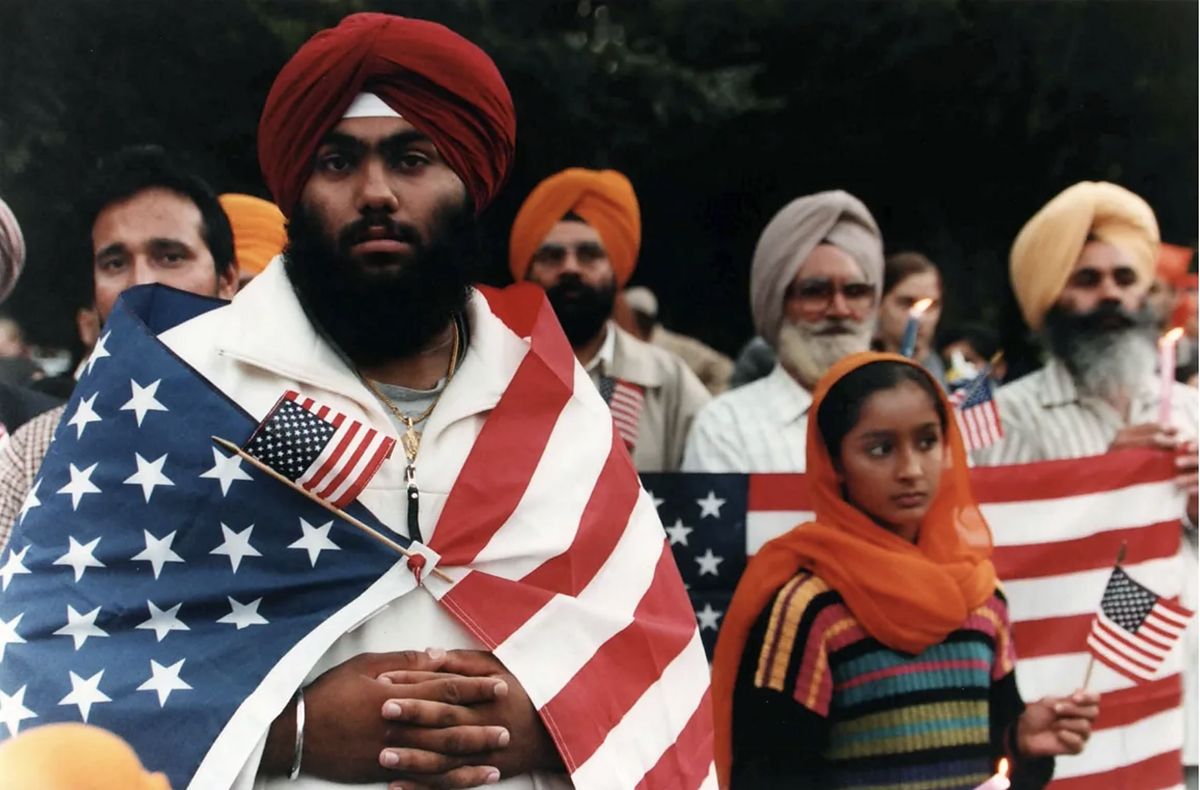 Some of Lee’s most recognizable photos are similarly profound records of devastation and of communities, justifiably, in uproar. There is the haunting gaze of a grieving Lily Chin, mother of Vincent Chin, who was murdered days before his wedding by two disgruntled autoworkers in Detroit (1982). Or members of Sikh community shrouded in stars and stripes, preemptively demonstrating their national loyalties in the wake of 9/11 (2001).