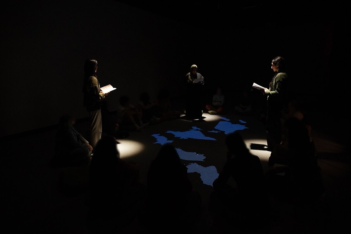 Sitting alongside about a dozen audience members arranged in a circle on the floor, Fawaz, Kim, and Sethi narrated through events fictional, historical, and current in a potent three-part montage that captures the whirling tempest of our current moment from its eye. At its conclusion, the play invites audience members to eat a watermelon seed that is offered to them and consider our communion.