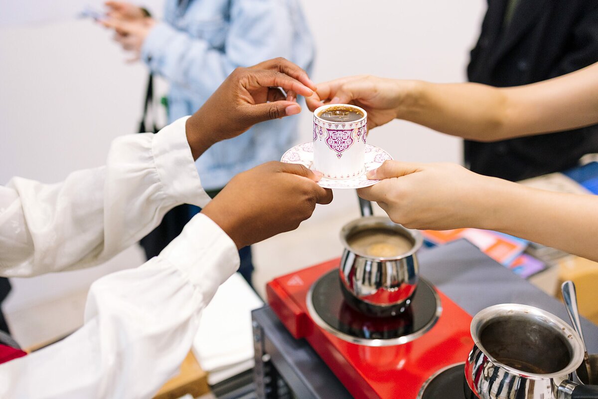 As I listened to the jam session taking place—a relaxing reverie of improvisational guitar chords, keyboard melodies, and whispers amongst the musicians—I found myself pleasantly interacting with viewers and museum staff by offering tea or instigating conversation, something that is rarely experienced in typical art spaces.