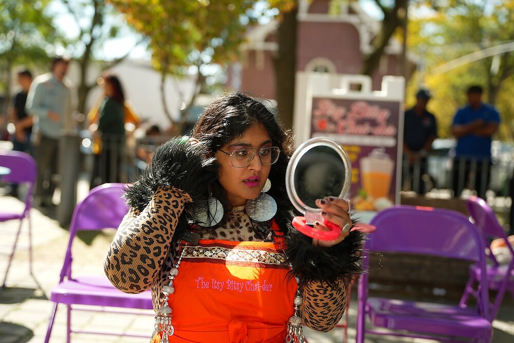 This device of “place as character” aligns with street theater traditions, whose deep roots in countries like India and Brazil have long served as a form of radical art-making centered around working class issues. Street theater traditions have also influenced Unni’s non-hierarchical approaches to playwriting. She employs devising techniques, developing culturally-competent scripts in partnership with organizers from predominantly South Asian and Indo-Caribbean communities. “Even more than traditional theater, I feel like cultural dance and music performances are really inspiring,” she added, describing how these shows pull non-performers in to participate.