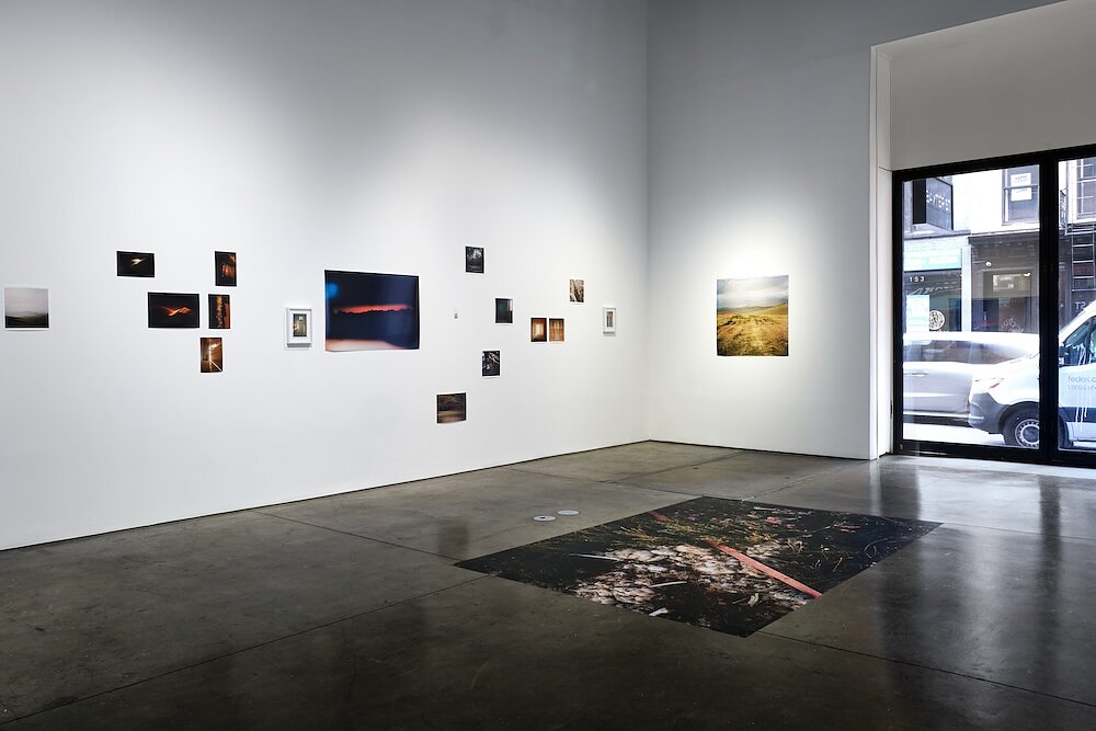 All the big pieces—the sunsets, the moonrise, and the landscapes—were the ones I knew would be in the show from the very beginning. The largest one on the floor was the first piece for which I decided on the size and placement. I initially wanted the endpoint of the diagonal line in the photo to start from the entrance, so it could provide a visual guide for visitors as they moved through the exhibition. But in the end, we couldn’t do it that way due to the limitations of the space.