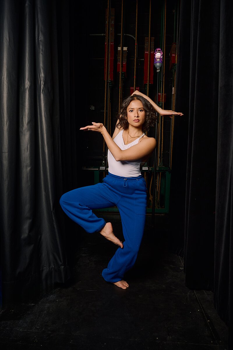 Artist, choreographer, and dancer Ishita Mili believes in the power of hybridizing dance forms to tell honest and globally relevant stories. Over the past several years, the 2023 Jadin Wong Artist of Exceptional Merit has developed a dance vocabulary that incorporates Indian classical, bharatnatyam, Mayurbhanj chhau, contemporary, hip hop, and street styles in a distinct approach to movement that resists hierarchy and codification.