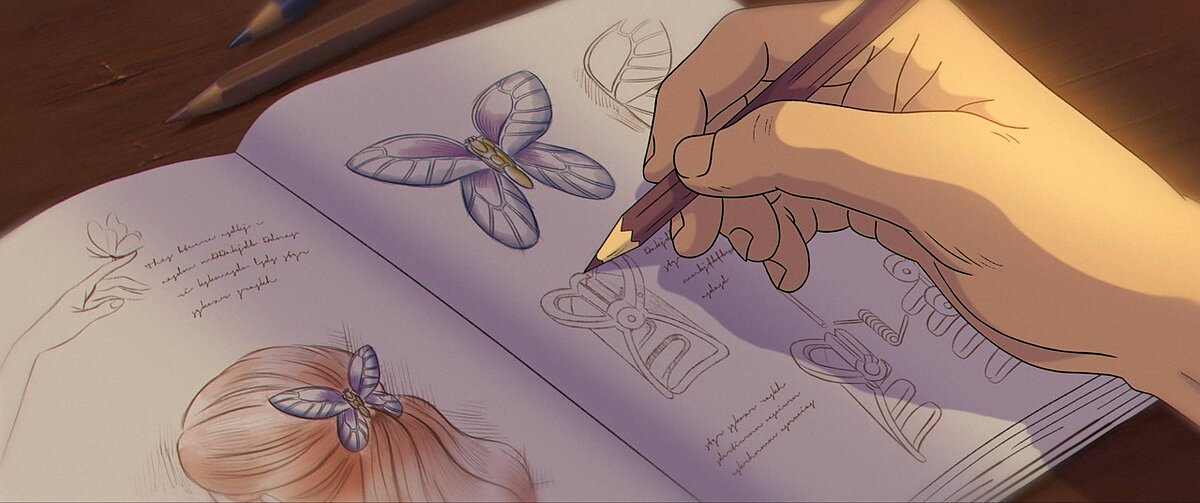 UR: When we started making the film, we worked with Geoffrey Wexler, the Chief of International for Studio Ponoc and Studio Ghibli. He brought on board Moya O'Shea, who helped with the script. While we were in London, after finalizing the script in 2018, we were invited to the famous glassblower, Peter Layton’s, studio. I shot five or six hours of footage there and interviewed the glassblowers about everything. Then I edited together a 20-minute documentary, for internal use, so that whenever somebody would come on board, they would get a 20-minute crash course in everything related to glassblowing. That was fun. Then our animation team, especially our animation director and art director, worked together to create a look that, when the glass moves, the light and colors looked beautiful, but also were accurate to the caustics of glass.